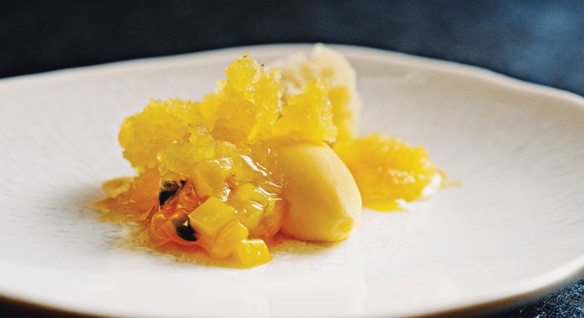 Avec la touche créative du chef étoilé Jean Sulpice, le biscuit de Savoie se pare de saveurs exotiques pour offrir un dessert à la fois crémeux et délicieux.