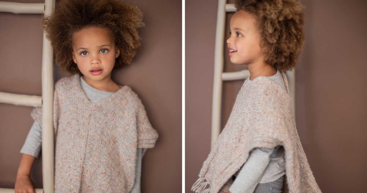 Ce modèle est idéal pour celles qui se lancent dans le tricot. Il se compose de deux rectangles tricotés en point jersey, agrémentés d'une bordure en côtes 2/2. Une fois assemblés, les rectangles forment un poncho qui peut être terminé par de jolies franges aux extrémités.
