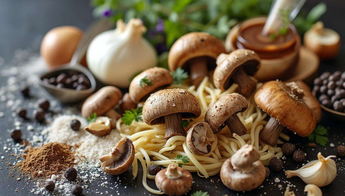 Dans une casserole, faites revenir les champignons hachés dans de l’huile d’olive avant d’ajouter l’ail et l’oignon en poudre pour plus de profondeur de goût. Filtrez votre eau de trempage et incorporez-la à la casserole. Une fois que le mélange commence à frémir, ajoutez la fécule d’arrow-root préalablement délayée dans de l’eau froide. Remuez bien jusqu’à obtenir une consistance lisse et nappante.