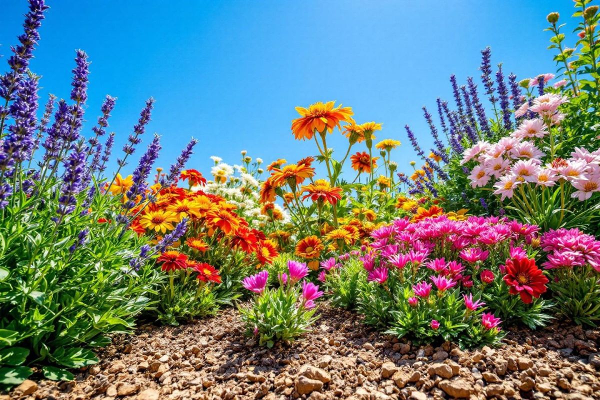 - Portulaca et gazania – idéales en potées ou bordures ensoleillées pour des touches colorées durables.