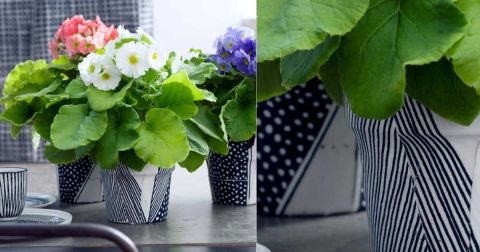 - Papier découpé : Utilisez du papier peint, des serviettes ou du washi tape pour recouvrir vos pots. Cela donne un aspect unique et coloré.