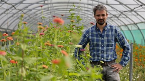 Pour se former, Jean-Baptiste suit une formation à distance sur la "slow flower", un mouvement qui prône la culture de fleurs saisonnières et locales. En 2022, il lance sa production sur un terrain de 1,5 hectare, adjacent à sa maison. « Je gère tout, du semis à la récolte », se réjouit-il. Avec plus de trois cents variétés cultivées, il propose une gamme variée qui respecte le cycle naturel des saisons, un défi qu'il aborde avec enthousiasme.