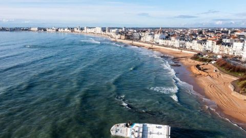 Le propriétaire du voilier, Michel, attend la marée basse à Pont-l'Abbé (Finistère) pour évaluer les dégâts et discuter des options de renflouage avec des experts.