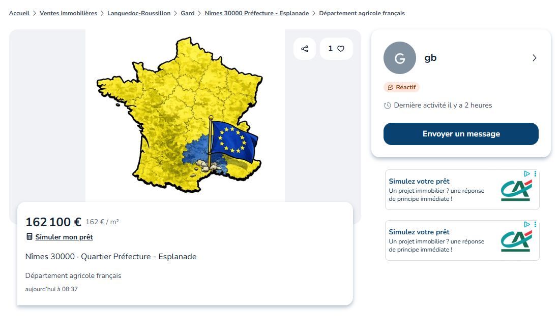 Face à l’activation temporaire de l’accord de libre-échange Mercosur, les agriculteurs de la Coordination rurale du Gard ont décidé de prendre une mesure audacieuse. En effet, ce samedi 28 février, ils ont posté une annonce sur Le Bon Coin, stipulant la 'vente' du département. Cette démarche vise à alerter le public sur les enjeux d’une concurrence qu'ils jugent déloyale.